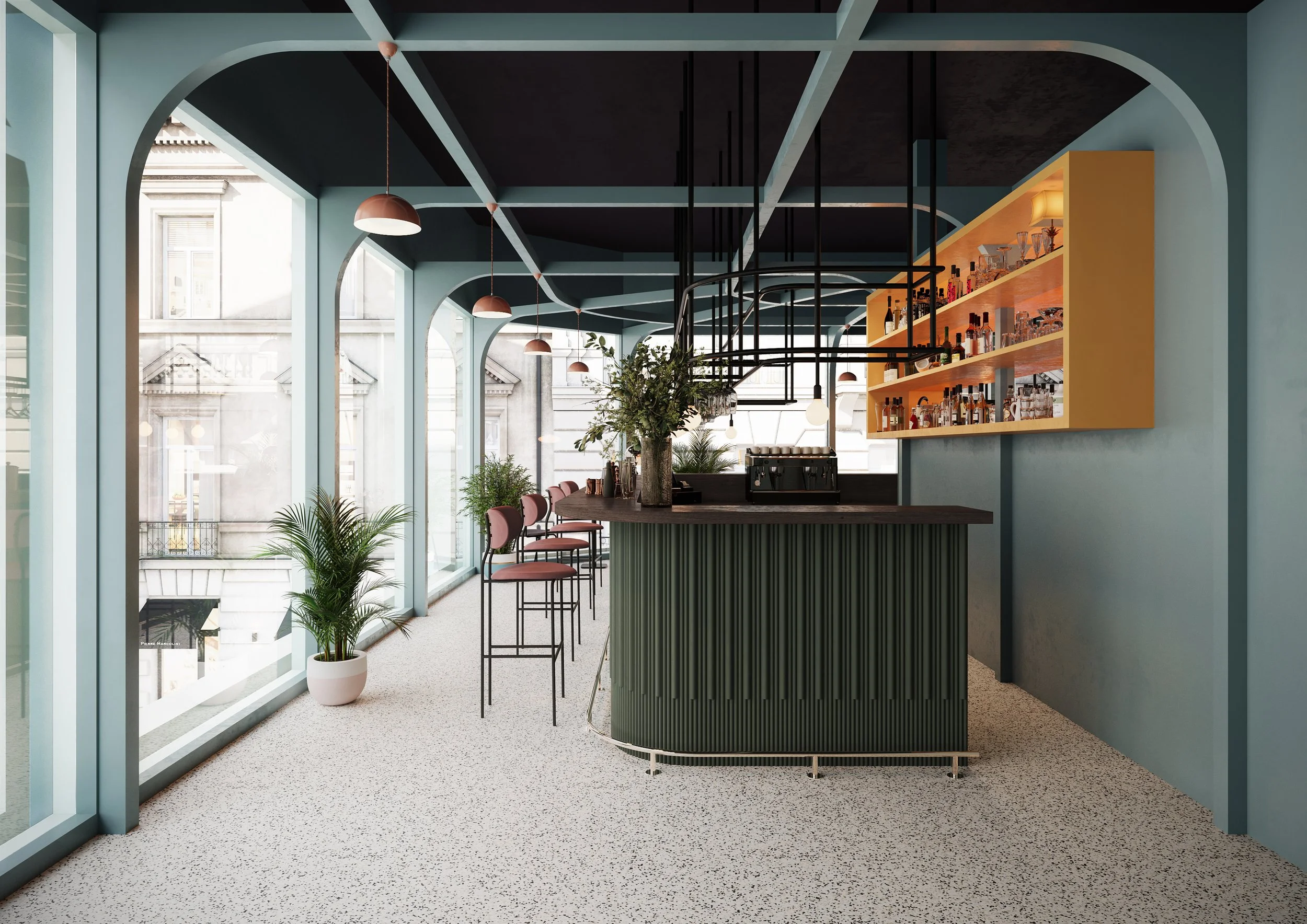 Skammin toimistossa on käytetty DESSO VERSO -tekstiililaattaa (7926 vihreä). Kiinnitys on tehty tarroilla mattojen alapuolelta kelluvana. Muita tuotteita on pienempinä paloina ikkunapenkeillä.